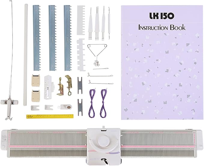 The LK150 Silver Reed is a mid-gauge knitting machine for hobbyists seeking professional results at home. With 150 needles and a 6.5 mm gauge, it creates wide, seamless panels—ideal for blankets and afghans.
